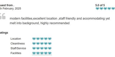 Service was the best ever experienced, in fact, Rob and Lisa gave us the best ever experience of any recommendation by Booking.Com in all the years we have used them.