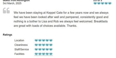 Amazing! Lisa and Rob are fabulous, so accommodating. Home from home 😊Beautiful property, decor was so lovely Couldn’t fault it in anyway.